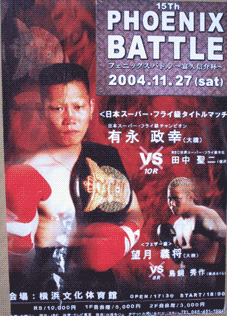 本日はご多忙の中、フェニックス・バトル19富久信介杯にご来場いただき誠に有り難うございます。さて、本日のメインエベントでは東洋太平洋Sフライ級王者・有永政幸が2度目の防衛戦に臨みます。相手は前王者のウェンペット。前回はその裁定が物議をかもしだす等、両者共に不本意な試合であっただけに、ハッキリした形で勝敗をつけることが、有永にとって絶対の指名といえるでしょう。
