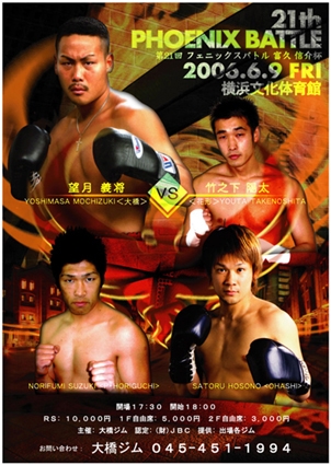 今回は去る三月八日に営団地下鉄事故で亡くなった我がジムの練習生、富久信介君への追悼試合という形をとらせていただきます。勉強に於いてもボクシングに於いても最高を目指すという文武両道の実現が彼の大きな夢でした。それが着実に実を結びつつあったその矢先、まさに夢の途中でこの世を去らなくてはいけなくなった無念は推し量りようもありません。その手の中に何をつかんだかではなく、いかにしてつかんだか、その道程こそ美しく尊いものである。富久君を偲ぶときあらためてそう思います。ですから良い内容の試合をして、それを選手、スタッフ一同、富久君の墓前に捧げたいと思います。合掌。