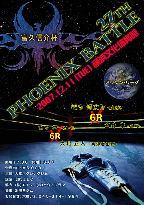 また、今回は4年前に地下鉄事故で亡くなった大橋ジムの練習生富久信介君の情熱と意志を尊重し四回戦を多数組みました。そのなかで特に優秀とみなされる選手には彼の名を頂いた賞を贈りたく思います。