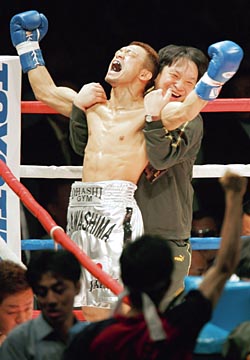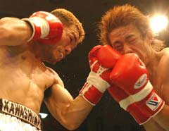 再びベルトを巻いた川嶋は心に決めていた言葉を絶叫した。「去年は震災や津波とか多くてつらい年だった。今年はみんなで最高の年にしましょう!」。新潟県中越地震など、世界王者として天災に苦しむ人々を勇気づけたかった。すぐに防衛戦も待っている。今年5月に徳山との3度目の対戦が濃厚だ。一昨年は判定負け、昨年は右の強打で1回TKO勝ちと過去1勝1敗。「前回がラッキーパンチだと言われるのも嫌なので、決着をつけたい」。血と涙でベルトを死守した川嶋が、05年も世界王者の誇りを胸に突き進む。【藤中栄二】