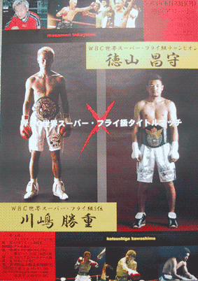 ▼第1戦(03年6月、横浜アリーナ。〇王者・徳山-●挑戦者・川嶋) 試合前からオーバーワークでの腰痛に苦しむ川嶋に、徳山が得意な左ジャブを効果的にヒット。距離をキープした。川嶋も序盤から積極的に攻撃を仕掛けるが、単発で距離を詰められない。5回に徳山が左拳を負傷するが、有効打を受けないまま、最大4ポイント差の3-0の判定勝ちでV7に成功