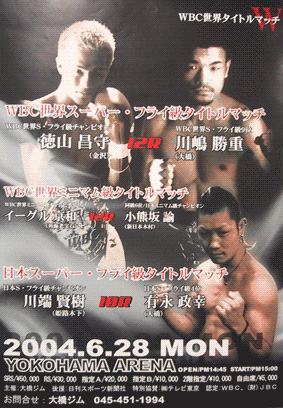 1997年2月プロデビュー。右ストレートが強い右ファイター。戦績は31戦28勝(18KO)3敗。1974年(昭和49年)10月6日生、千葉県市原市出身。昨年8月、元世界王者のヨックタイ・シスオー(タイ)に判定勝ちし世界ランク入り。2002年4月、日本スーパーフライ級王者。2002年7月、初防衛に成功。2002年12月、日本王座返上。2004年6月28日WBC世界王者徳山昌守選手を1ラウンド1分47秒、TKOで倒し、新チャンピオンとなる。祝! 世界戦2度目の防衛