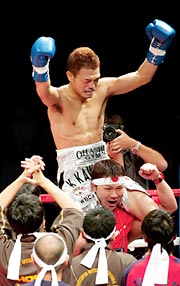プロボクシング日本Sフライ級タイトルマッチ10回戦(28日、横浜アリーナ)。挑戦者・有永政幸が、2-1の判定勝ちで王者・川端賢樹を下して、日本王座初戴冠。00年10月に元世界王者・山口圭司にKO勝ちした実力者が、2度目の挑戦で日本の頂点に就いた。5回には王者の右のパンチを浴び、ダウンする大ピンチ。だが、細かい連打でポイントを奪い返す逆転勝利。「これで失敗すれば、進退も考えていた」。引退覚悟で臨んだ背水の陣でついにベルトを巻いた。