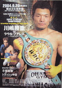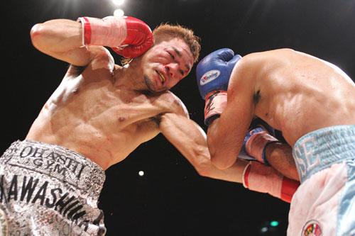 日本スーパーフライ級タイトルマッチが30日、東京・後楽園ホールで行われ、強打を誇る王者川嶋勝重(大橋)が結城康友(ヨネクラ)を5回2分34秒でKO、初防衛に成功した。結城の手数に手を焼いたが5回、右ストレートでぐらつかせると、一気に襲い掛かってダウンを奪った。立ち上がってからも攻撃の手を緩めずに連打で再びダウンを奪い、最後もラッシュで試合を決めた。王座を奪った4月の佐々木戦で痛めた右手首が完治せず、オーバーワークで試合の1カ月前に血尿が出るなどコンディションは最悪に近かった。世界ランクもWBA6位(WBC7位)まで上昇。「ここまで来たら(世界戦を)やりたい」と意気込み、大橋秀行会長も「課題はあるが、やるなら来年」と世界を見据え始めた。川嶋が初防衛 日本スーパーフライ級