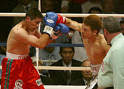 ◆ロレンソ・パーラ(ベネズエラ)アマチュアで278戦268勝10敗の戦績を残し、99年3月プロデビュー。03年12月にエリク・モレル(米国)を判定で破り、WBAフライ級王座を獲得した。フットワークが速く、左右の強打が武器の右ボクサーファイター。戦績は25戦全勝(17KO)。26歳。アラグア州出身。